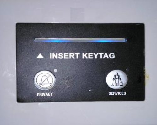 Module-3M Dimension-H 45mm, W 75mm Color-Black/White/Grey Unit-Energy key tag with control unit Features- Micro push button for call bell, Do Not Disturb indicator with red led, Laundry indicator in yellow led, Make my room indicator in green led, Luxury type indicators, Advance microprocessor based system, System integration with rj45 connector and cat6 cable.