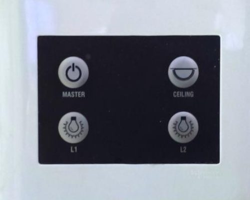 Module-3M Dimension-H 45mm, W 75mm Color-Black/White/Grey Unit-Keypad panel with four mode lighting scenes. Features- Four mode selectable scenes with Master on/off switch. You can operate the room mode with ceiling/light-1 & light-2 mode. Customize lighting arrangement with multiple scenes. Advance microprocessor based system, System integration with rj45 connector and cat6 cable.